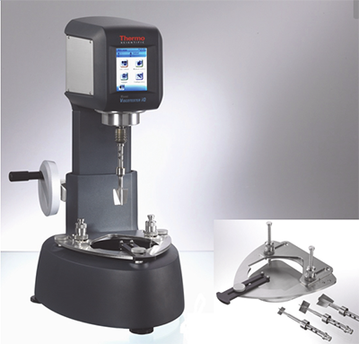 使用賽默飛哈克Viscotester iQ 智能流變儀配合通 用夾持具及槳葉式轉子可以快速,高效的完成果醬類樣 品的質控工作,并且可以對樣品進行原位的性能表征及 評估。該儀器具備智能升降功能,可以保證便捷,快速 的操作。配合通用夾持器,可以讓用戶在特定的容器 中進行樣品測試,并保證槳葉轉子測試位置的高重復 性,這也是得到高重復性數據的保證。賽默飛 哈克Viscotester iQ智能流變儀既可以通過內置程序單獨工作, 也可以通過具備強大功能的哈克TMRheoWinTM 軟件來 完成更加復雜的測試和數據評估。