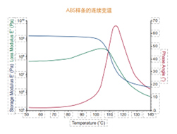 軸向力控制和自動應變的優點在使用三點彎夾具對ABS樣條的測試中表現得尤其突出。軸向力移動十字頭能保證在測試過程中夾具能始終緊密接觸樣品。恒力調整在跟蹤樣品在測試過程中的熱膨脹和由于玻璃化轉變過程中的模量急劇變化可避免樣品彎曲。