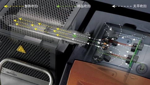 水平吹掃氣流流經樣品上方,獲得最優靈敏度