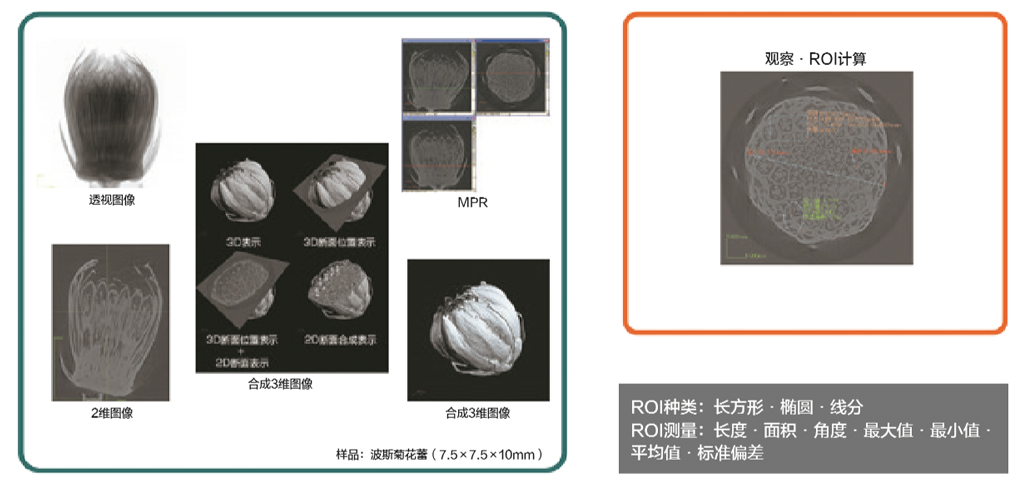 利用在同一幀中顯示立體圖像和斷面圖像的新功能,樣品的待觀 察部位和部位在圖像中的位置同時表示,對比一目了然。