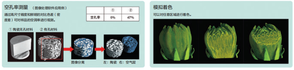 業(yè)界最高分辨率的工業(yè)用X射線CT。 除了金屬材料外,以往工業(yè)CT難以觀測的輕質元素復合材料都可以進行無損分析。